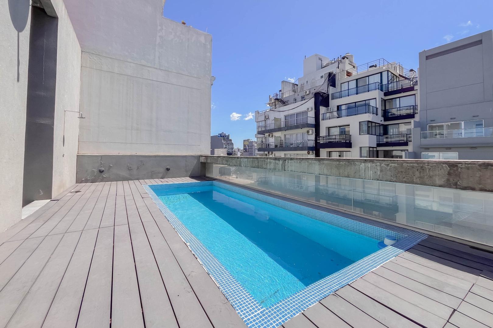 Pileta en terraza: Perfecta para los días cálidos de verano, con espacio para relajarse y tomar sol.